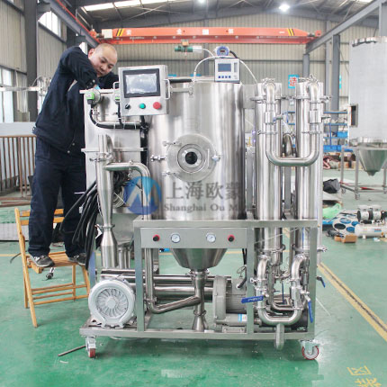閉式循環(huán)噴霧干燥系統(tǒng)是在密閉的環(huán)境下工作,干燥介質(zhì)為加熱氣體,干燥塔內(nèi)為正壓操作,若內(nèi)部壓力下降,壓力變送器就能自動(dòng)控制氣進(jìn)入量,以保證系統(tǒng)壓力平衡。