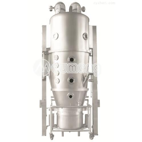 物料粉末粒子,在原料容器(流化床)中呈環形流化狀態,受到經過凈化后的加熱空氣預熱和混合,將粘合劑溶液霧化噴入,使若干粒子聚集成含有粘合劑的團粒,由于熱空氣對物料的不斷干燥,使團粒中水分蒸發,粘合劑凝固,此過程不斷重復進行,形成理想的、均勻的多微孔球狀顆粒。